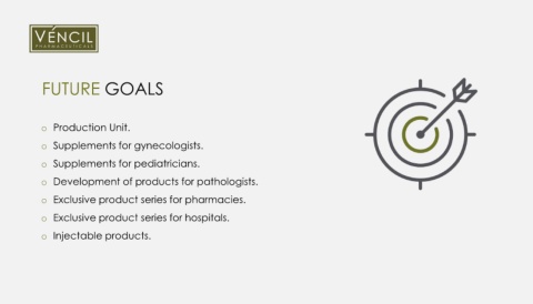 FUTURE GOALS o Production Unit. o Supplements for gynecologists. o Supplements for pediatricians. o Development of products for pathologists. o Exclusive product series for pharmacies. o Exclusive product series for hospitals. o Injectable products.